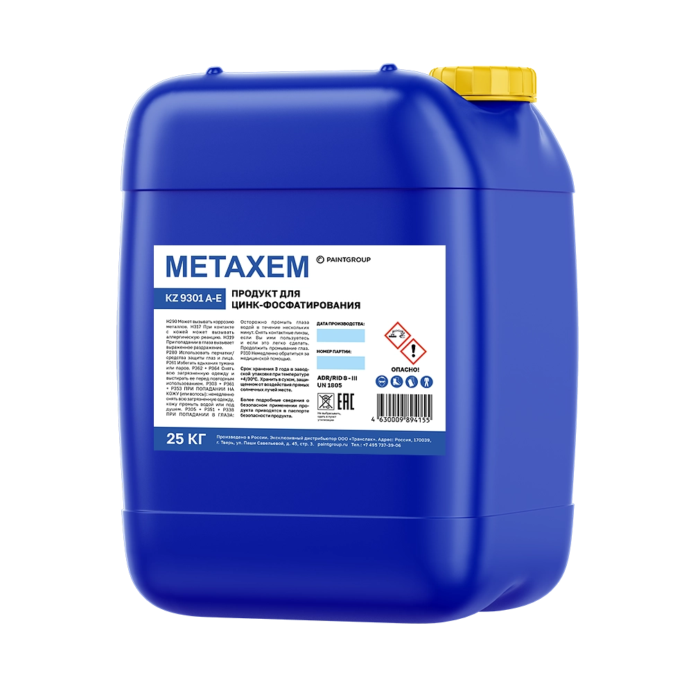 Жидкий продукт для процесса трехкатионного цинк-фосфатирования. Предназначен для обработки стальных и оцинкованных поверхностей. Рабочая концентрация: 60 г/л. Метод обработки: распыление. Температура: 50-55°С.
