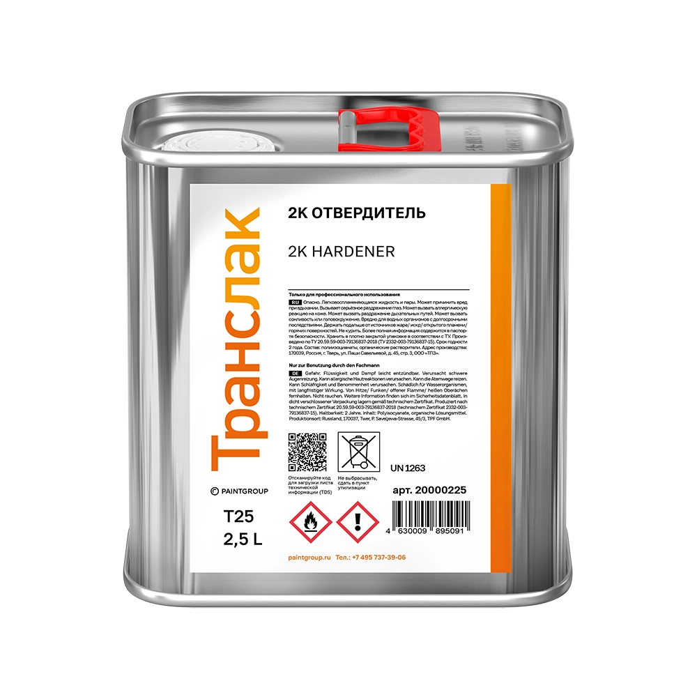 2К полиизоционатный отвердитель, средней скорости реакции (normal), алифатический. Применяется как стандартный отвердитель с большинством полиуретановых, акриловых и алкид-полиуретановых материалов Транслак согласно технической документации на продукцию. Предназначен для использования в среднем температурном диапазоне (20-25°С) и на объектах средних габаритов, но может применяться в различных условиях нанесения и на изделиях различных габаритов, в зависимости от отверждаемого продукта.