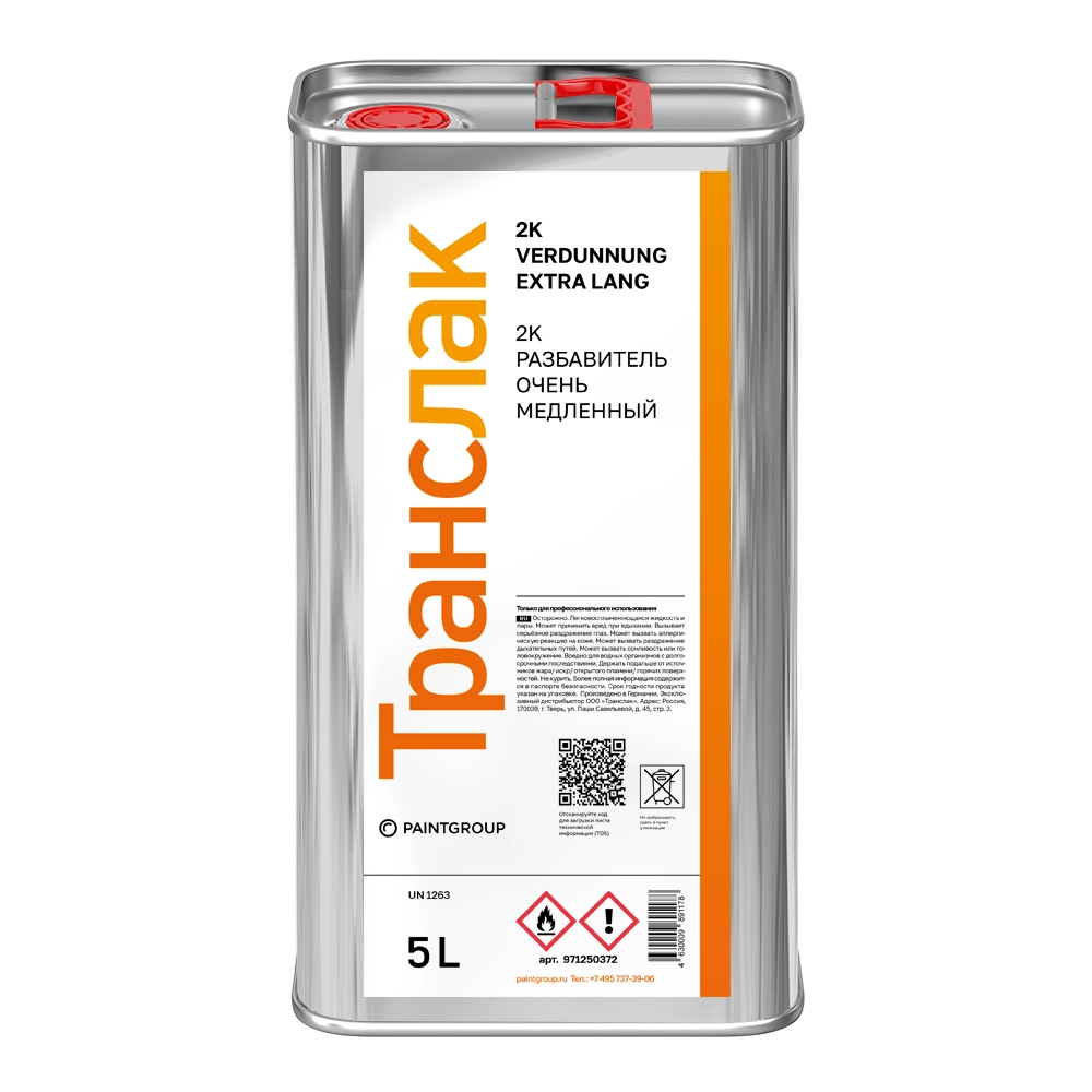 Разбавитель для 2К материалов, очень медленный, с максимально увеличенным временем испарения (extra slow). Предназначен для доведения смеси ЛКМ до рабочей вязкости. Применяется со всеми полиуретановыми и акриловыми материалами "Транслак", при высоких температурах (выше 30°С) и на объектах очень больших габаритов, для улучшения растекаемости и предотвращения образования опылов. Рекомендуется применять в сочетании с медленными отвердителями. Хорошо зарекомендовал себя с некоторыми эпоксидными грунтами "Транслак" (согласно TDS) в условиях высоких температур и на больших объектах. Может использоваться для промывки инструментов и оборудования после окраски и для очистки и обезжиривания поверхности перед окраской.