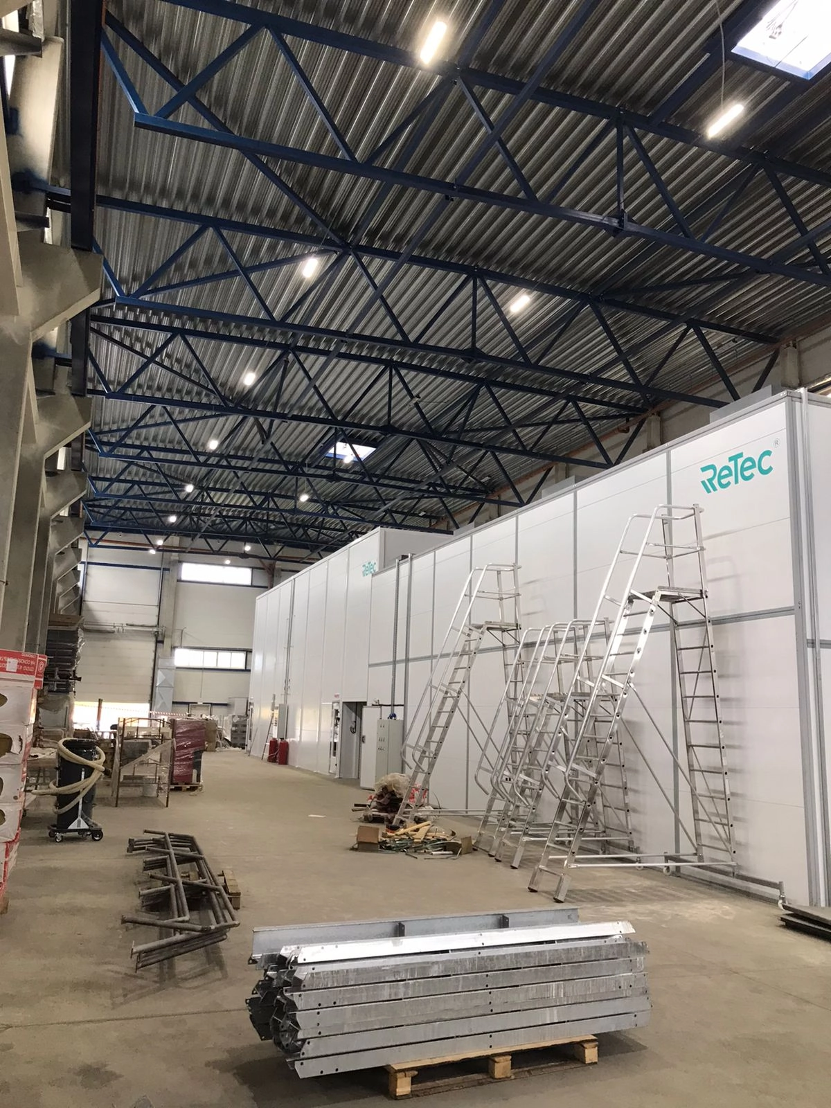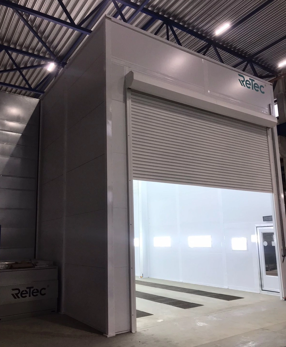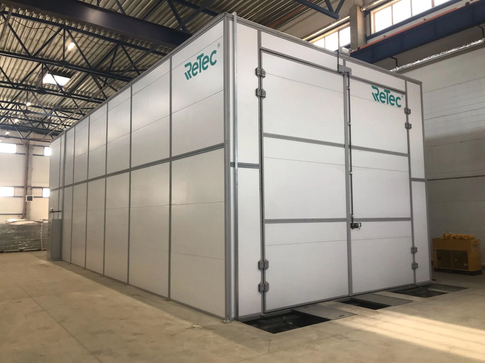 - Обитаемая дробеструйная камера для двух операторов с системами автоматического сбора, очистки и рекуперации абразива. Внутренний размер камеры (ДхШхВ) 15 х 6,5 х 5,4 м.